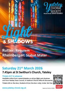 Come and join us for an evening of captivating choral music that illuminates the beauty that can emerge from both light and shadow. Featuring works by S. S. Wesley, Rheinberger, Gjeilo and Will Todd, the programme culminates in John Rutter’s Requiem.