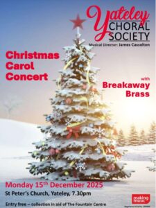 Yateley Choral Society present – a Christmas Carol Concert 15/12/25 28th November 2025 Events, News Tags: Christmas concert